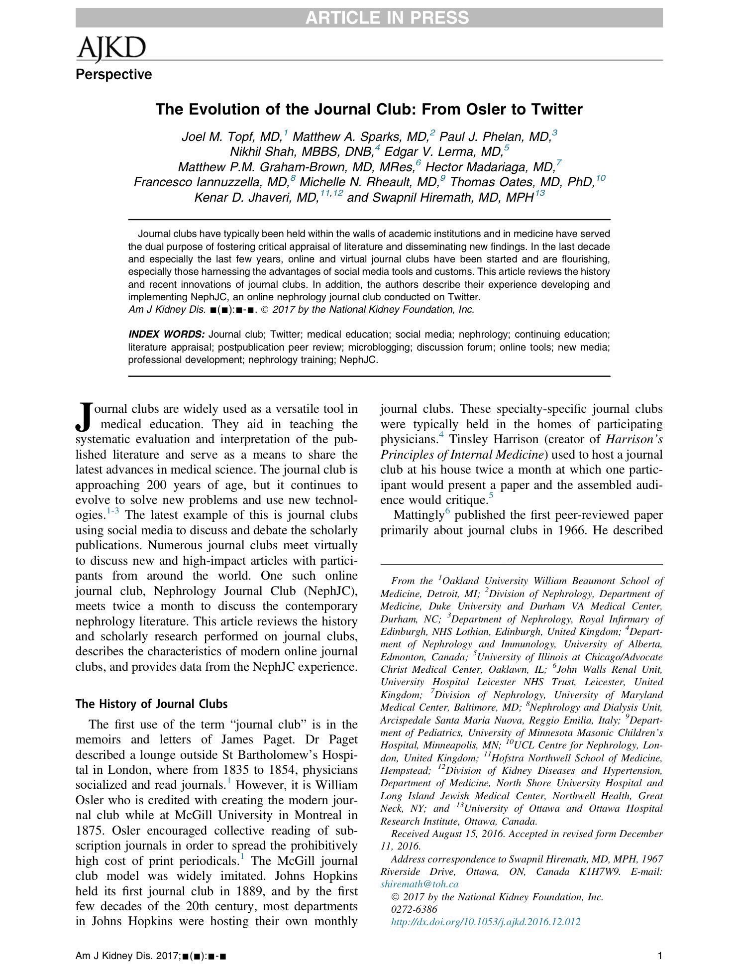 Edgar V Lerma On Twitter Anna Jester Nephondemand The Evolution Of The Journal Club From Osler To Twitter From Ajkdonline Https T Co Uful7qlzjo Https T Co Cqpmtybyz6 Twitter